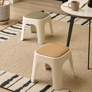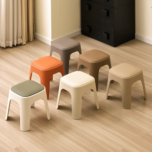 プラスチック製のスツール、家庭用積み重ね可能なスツール、モダンでシンプルなハイスツール、レストランのダイニングチェア、リビングルームのソフトパッケージの正方形のスツール