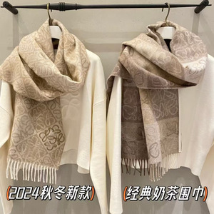 羊绒驼色格子老花罗双面棋盘格围巾女 秋冬羊毛提花流苏LEO披肩