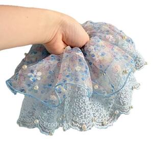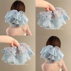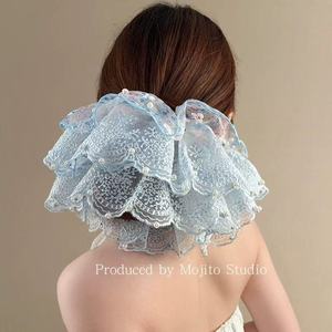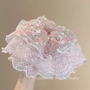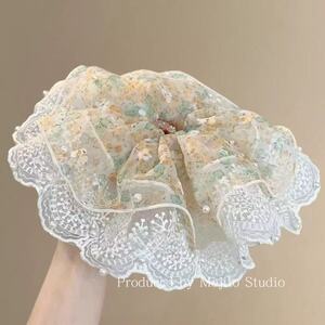 ミントサマー~夏のメッシュ二層レースパールヘアゴム女性用スーパーフェアリー気質花柄トラベルヘッドフラワー