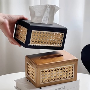 日本の無垢材のティッシュボックス、レトロなハイエンドの手織り籐ティッシュボックス、ホームリビングルームとレストランのライトラグジュアリースタイル