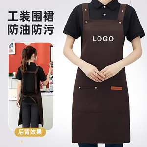 新款防水防油围裙餐饮咖啡店耐脏男女帆布工装围裙围腰定制印字