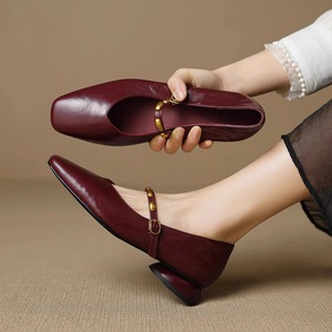 合わせやすい〜フレンチレトロシープスキンソフト表面ワンライン厚底ヒールシューズ女性用2025春新作メリージェーンシューズ