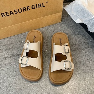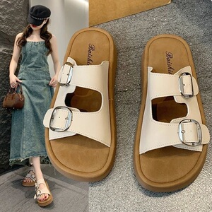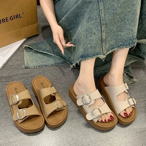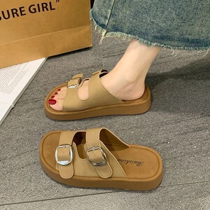 ファッショナブルで快適で多用途なビルケンシュトックシューズ 2025 夏厚底ミッドヒールベルトバックルルーズラウンドトゥカジュアルアウタースリッパ女性用