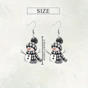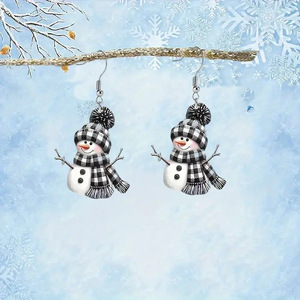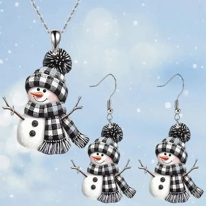 跨境创意平面圣诞雪人亚克力卡通项链饰品可爱黑白围巾雪人耳环