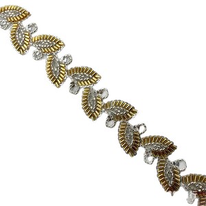 黒い背景の葉には金色の縁と黒いビーズが付いています