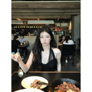 Sheepland 最低価格 20% off 胸パッド付き/メッシュスプライシングホルターネックキャミソールスリムウエストノースリーブトップ