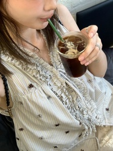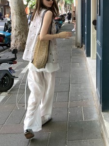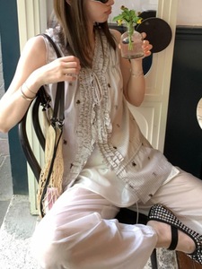 女性用の重厚な小さな蝶の刺繍ストライプの耳デザインのノースリーブシャツトップ