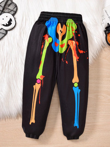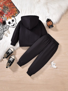 儿童万圣节骨头装扮夜光长袖连帽上衣长裤两件套