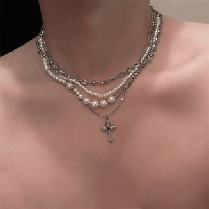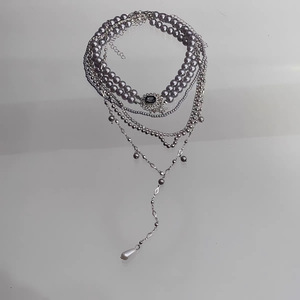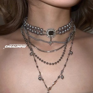 グレーパール多層宝石ネックレスチョーカーライト高級ニッチデザイン鎖骨チェーンハイエンドネックレス女性用