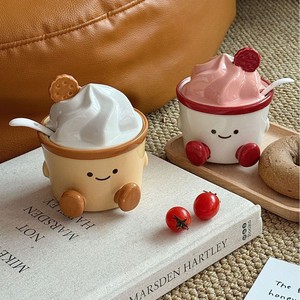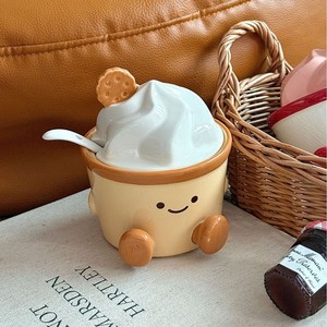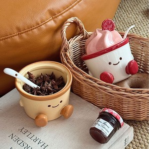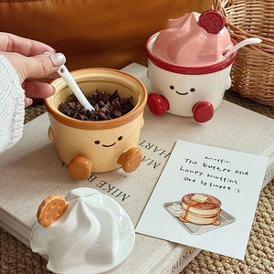 卡通可爱调味罐陶瓷辣椒罐厨房套装带勺调料罐带盖味精盐罐收纳盒