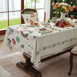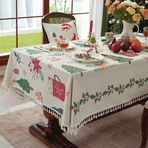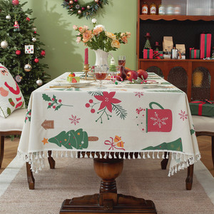 25 新しいクロスボーダー外国貿易クリスマスプリントタッセルフラワー長方形テーブルクロスコーヒーテーブルテーブルクロスメーカー卸売