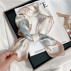 新款丝绸丝巾春秋夏季围巾女士披肩领巾70cm方巾四格拼色复古腰果