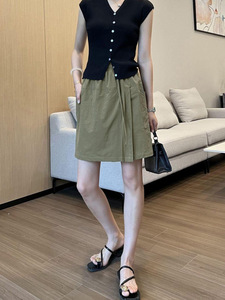 アメリカの速乾性カーゴキュロット女性の夏薄い 2025 新しいネイビーブルースカートルーズカジュアルスポーツショーツ