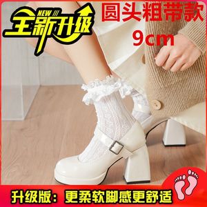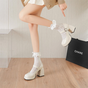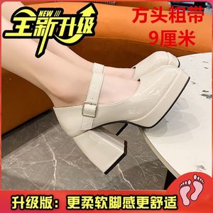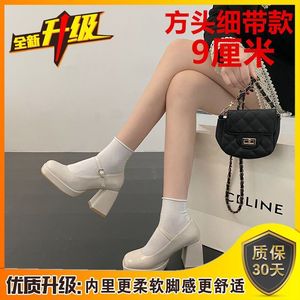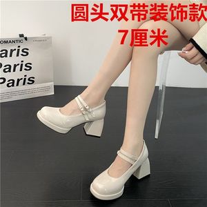ハイヒールの女性の結婚式の靴フレンチストラップメリージェーンシューズ防水プラットフォーム厚いヒールの靴オフホワイトの気質のブライドメイドシューズ