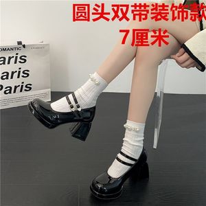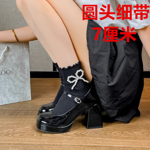 黒ラウンドトゥ太ヒールアップグレードバージョン7cm