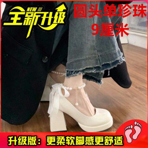 オフホワイト ラウンドトゥ 太ヒール アップグレードバージョン 9cm