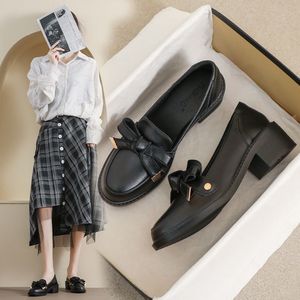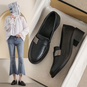 本革の小さな革靴女性のための 2024 新作春英国スタイルのハイヒール黒春夏仕事ソフトソール快適なローファー