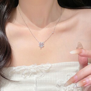 S925 スターリングシルバーラッキー四つ葉のクローバーネックレス女性のニッチデザインファッショナブルな気質鎖骨チェーン夏の美しいシルバージュエリー