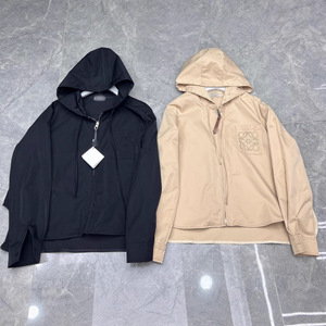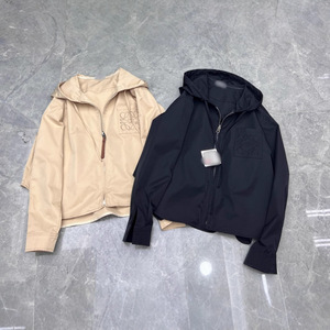 25早秋新款口袋刺绣不规则下摆连帽风衣外套百搭潮流