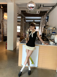 女性の夏のアウターウェア用の260gレーヨンベスト、新しいフレンチホットガールブラックハイエンドで見栄えの良いノースリーブトップ