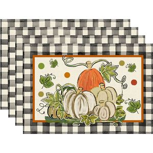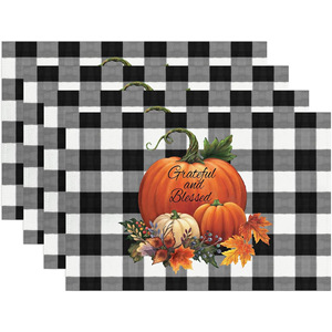 国境を越えた売れ筋の秋のテーマのプレースマット感謝祭の装飾キッチンテーブルマットリネンカボチャメープルリーフプリントカスタマイズ