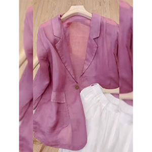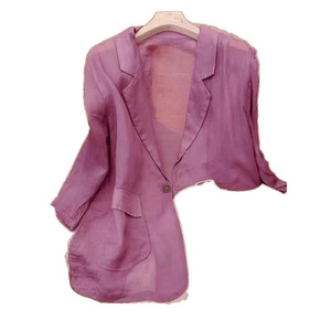法式温柔风粉紫色天丝衬衫夏季别致独特高级感超好看防晒漂亮上衣