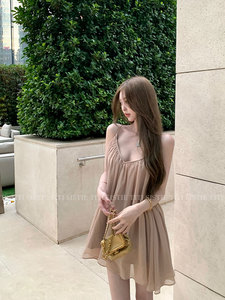 titiちゃん【ロマンチック匿名】シフォンドレス夏ショートバックレスリゾート風ホルターネックサスペンダースカート