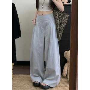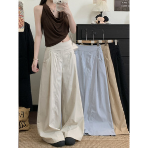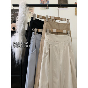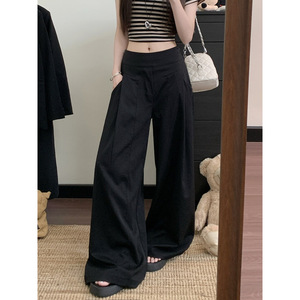 2025年夏の新しい韓国デザインの女性用ワイドレッグパンツ、ゆったりとしたカジュアルパンツ、フロアレングスのロングパンツの実物写真