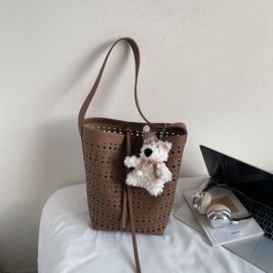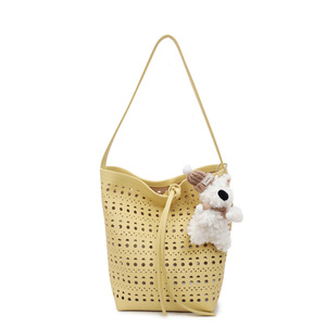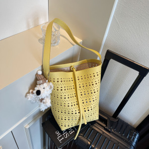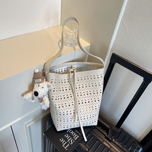 韓国のシンプルなニッチバケットバッグ中空織りショルダー通勤女性の新しいファッション大容量気質クロスボディバッグ