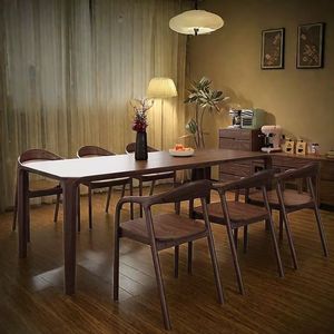 北美胡桃木实木餐桌长方形榫卯茶桌家用轻奢简约原木现代书桌饭桌