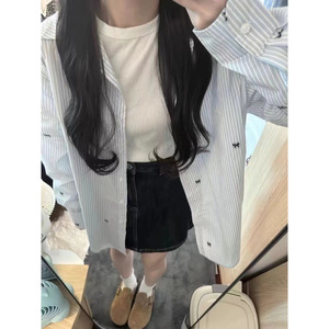 春季新款减龄条纹衬衫女设计感韩系宽松休闲衬衣长袖防晒上衣外套