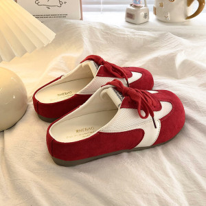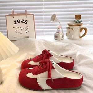 超人気の女性用包頭ハーフスリッパ 2025 春夏新作レッド ドイツ訓練靴 厚底インナー高さアップ ビルケンシュトック サンダル