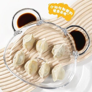 クマ餃子プレートガラスプレート酢プレート付きインターネット有名人餃子パスタシーフードエビ寿司フルーツプレート子供用ヌードルボウル