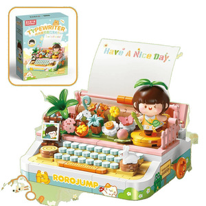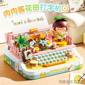 积木肉肉酱正版打字机花朵拼装玩具桌面摆件生日六一儿童礼物