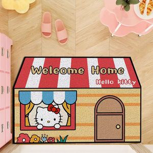 漫画ハローキティワイヤーフープフロアマット、お手入れ簡単、カット可能なPVCドアマット、滑り止め、汚れ防止、耐摩耗性、防塵フットマット