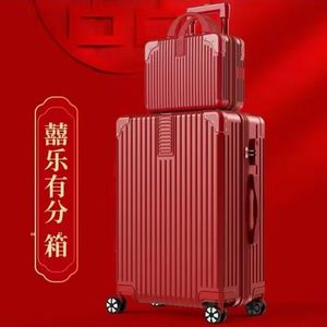 结婚行李箱陪嫁大红色拉杆箱婚新娘嫁妆箱20寸铝框子母密码皮箱子