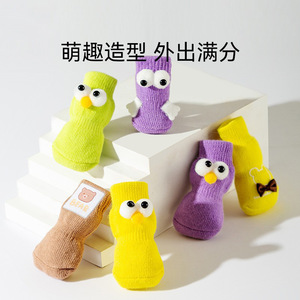 オールシーズン対応の新しい犬用ソックス、かわいい大きな目のペット漫画ニット猫滑り止め暖かい犬綿ソックス