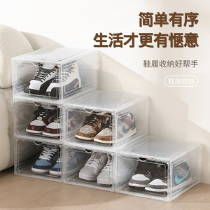 透明折りたたみ式シューズボックス、マグネット式で積み重ね可能、AJシューズキャビネット、家庭用省スペース、酸化防止、防塵シューズラック、透明シューズラック