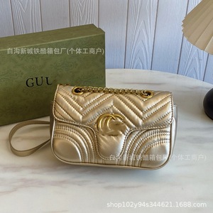 跨境小香风双G经典菱格绣线链条高级感时尚单肩斜挎包withbox