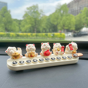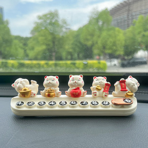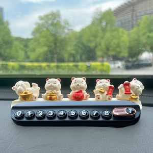 萌胖鸿运招财猫临时停车号码牌平安发财挪车电话牌香薰车内饰摆件