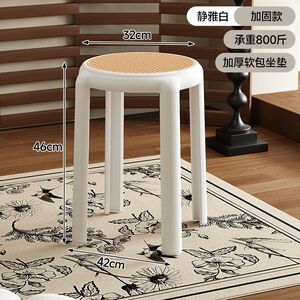 北欧の厚みのある籐のプラスチック製のスツール、ホームダイニングスツール、積み重ね可能なモダンでシンプルなドレッシングベンチ、靴交換用の小さな丸いスツール