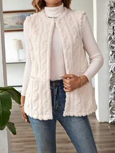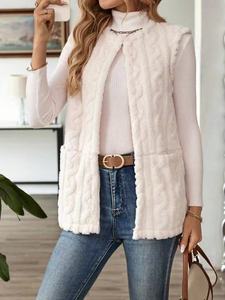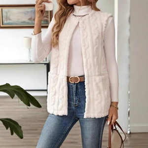 欧美跨境热销爆款纯色双面毛绒口袋无扣休闲女开衫马甲秋冬独立站