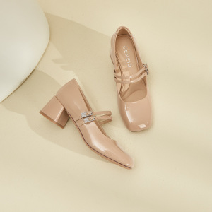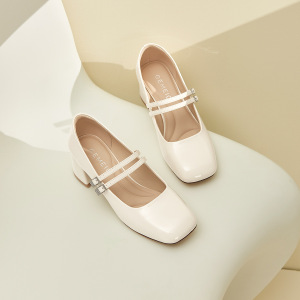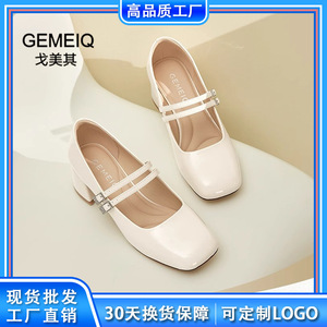 Gomeqi メリージェーンシューズ 2025 秋の新レディースカジュアルシューズレトロ脚見せホワイトラインストーン浅い口の靴