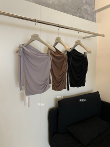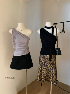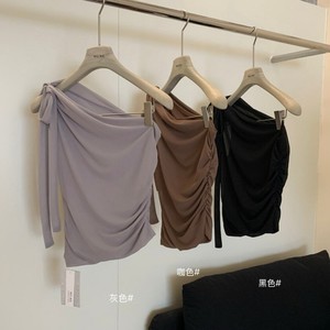 WGWE 夏レディース斜め肩ピュアディザイアスタイルノースリーブシャツデザインシンプルなリボンホットガールオフショルダートップ W5945