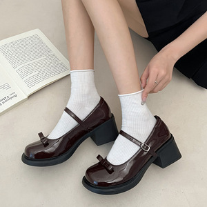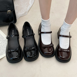 厚底レトロメリージェーンシューズ女性用 2025 夏新作リボン日本製 JK 万能ブラウンワンラインバックル小さな革靴