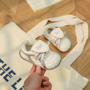 春と秋の男の子と女の子向けの子供用スポーツシューズ、滑り止め、快適、柔らかい底のベビー道徳訓練靴、ベルクロ付きの白い靴