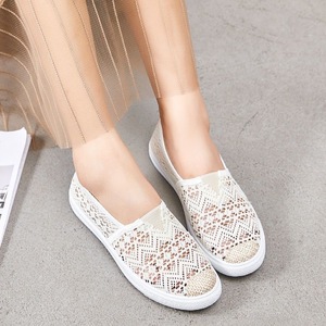 新しい夏の古い北京布靴女性の靴ソフトソール薄型通気性中空スリッポン快適な滑り止めカジュアルシューズ
