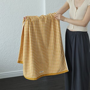 クラシックチェック柄コットン先染めタオルバスタオル大人家庭用純綿ソフト吸収性洗顔と入浴ロングタオル