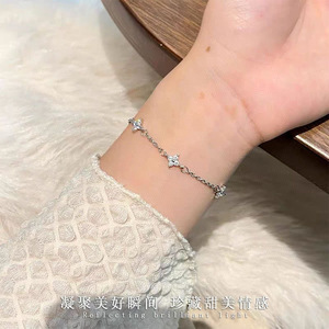 Yinjia シルバージュエリー純銀 999 マイクロ象嵌四つ葉のクローバーブレスレットファッショントレンドブティックスポットドロップシッピング