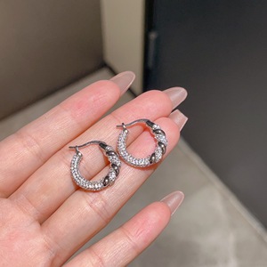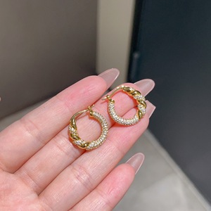 ヘビーデューティーフルダイヤモンドツイストイヤリング2025新しいホットスタイルハイエンドイヤリングヨーロッパとアメリカンスタイルの軽い高級感のあるメタルイヤリング